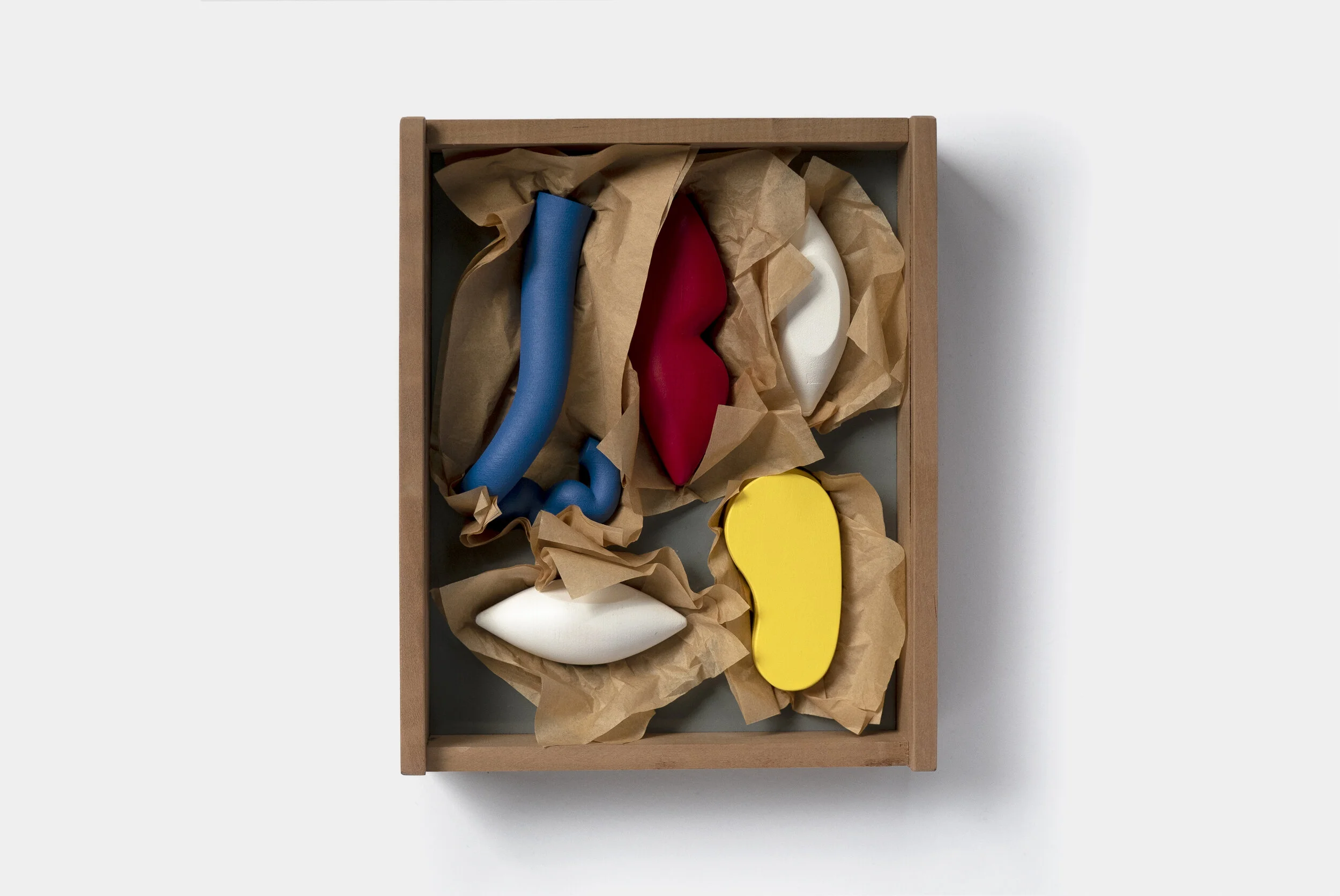 This is a toy, a series of sculptures or something to just keep stored away. It was created using wood and 3D printing. The pieces come in a numbered cherry wood box.